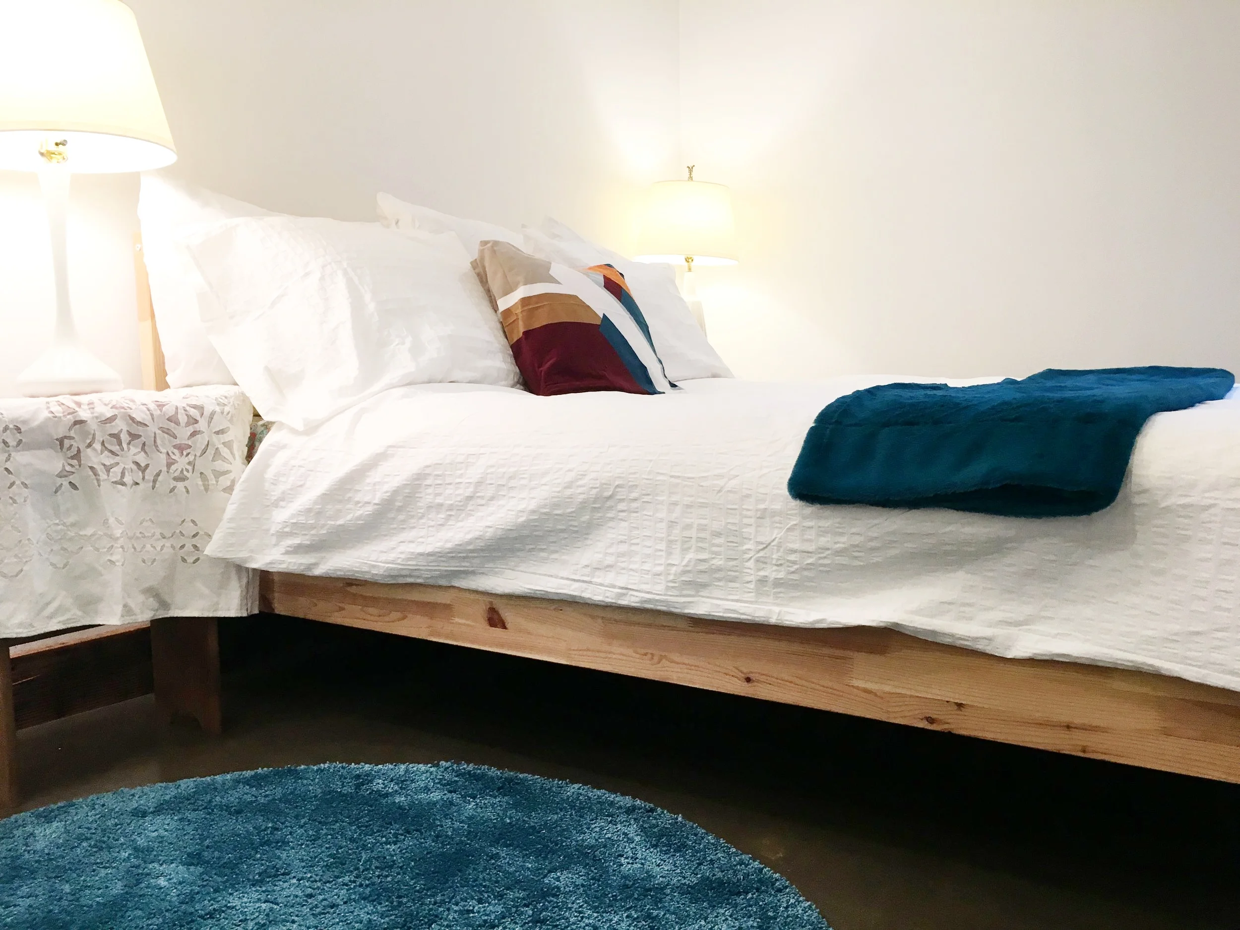 PDX Ranch mixes industrial elements with native woods, outdoor plantings, natural light and original artwork. The lower level of a classic Portland mid-century house has been transformed into a spacious oasis. Amenities include WiFi, washer and dryer, polished concrete floors, a walk-in rain shower, fireplace, open kitchen with farmhouse sink, walnut counter tops, reclaimed Oregon barn wood as trim, outdoor dining and sitting areas, fenced back yard visited by birds and squirrels, and a fire pit. Next door is Columbia Park Annex with grocery, restaurants and coffee nearby.